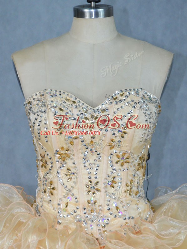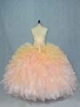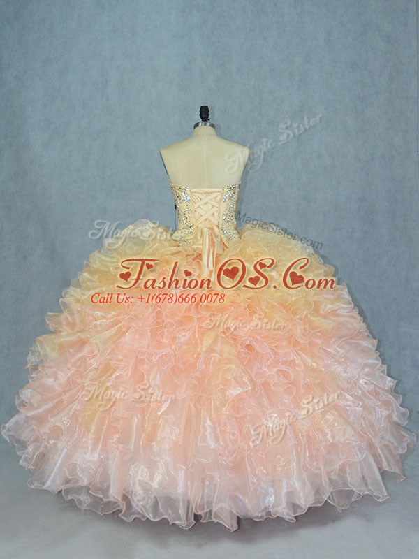 Stylish Floor Length Multi-color 15th Birthday Dress Organza Sleeveless Beading and Ruffles