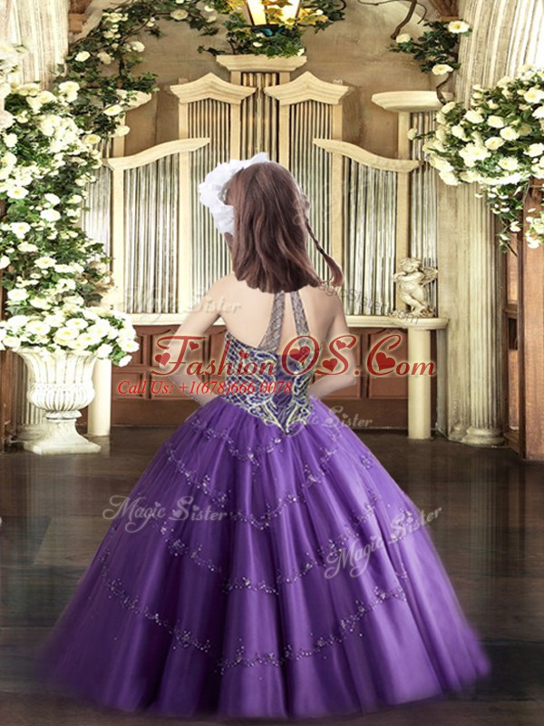 Stylish Halter Top Sleeveless Tulle Child Pageant Dress Beading Lace Up