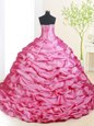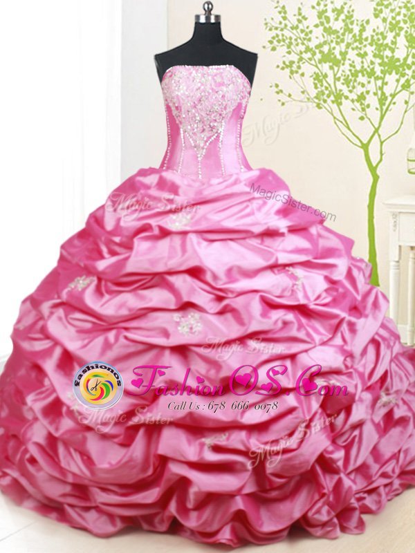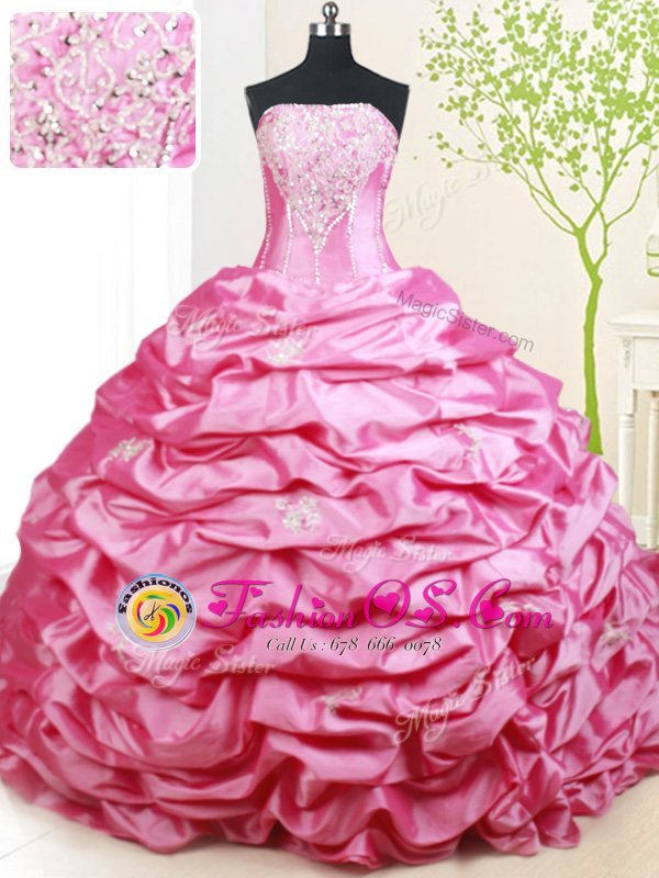Home >  Quinceanera Dresses >  Cheap Quinceanera Dresses > Stylish Hot Pink Taffeta Lace Up Strapless Sleeveless With Train Sweet 16 Dresses Brush Train Beading and Pick Ups