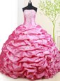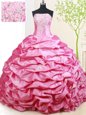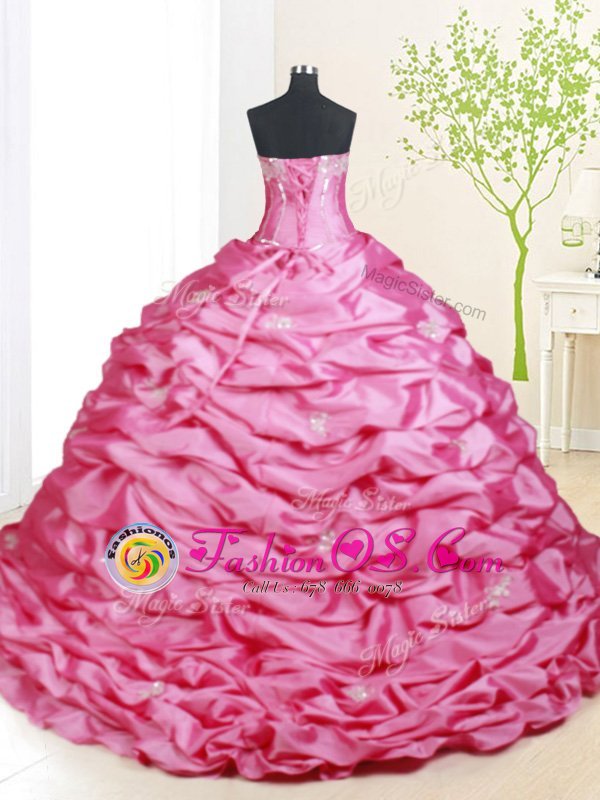 Stylish Hot Pink Taffeta Lace Up Strapless Sleeveless With Train Sweet 16 Dresses Brush Train Beading and Pick Ups