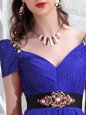 Stylish Knee Length Royal Blue Prom Evening Gown Chiffon Sleeveless Beading