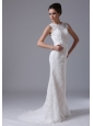 Home >  Wedding Dresses >  Lace Wedding Dresses > Stylish Lace Brush/Sweep Scoop Mermaid Wedding Dress Button