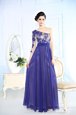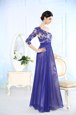 Stylish One Shoulder Blue Long Sleeves Chiffon Side Zipper Prom Dress for Prom and Party