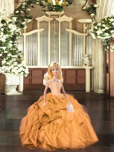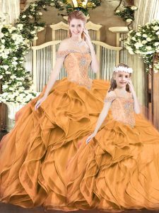 Home >  Quinceanera Dresses >  Princesita with Quinceanera Dresses > Stylish Orange Red Organza Lace Up Off The Shoulder Sleeveless Floor Length Quinceanera Dresses Beading and Ruffles