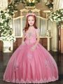 Stylish Pink Ball Gowns Appliques Little Girls Pageant Dress Wholesale Lace Up Tulle Sleeveless Floor Length