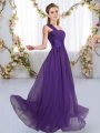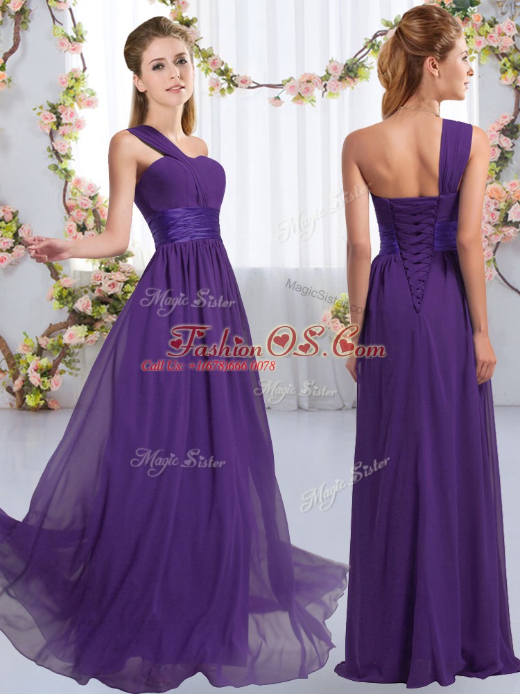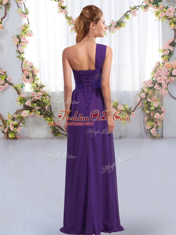 Stylish Purple One Shoulder Lace Up Ruching Bridesmaid Dresses Sleeveless