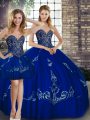 Stylish Royal Blue 15 Quinceanera Dress Military Ball and Sweet 16 and Quinceanera with Beading and Embroidery Sweetheart Sleeveless Lace Up