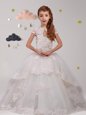 Home >  Special Occasion Dresses >  Cheap Flower Girl Dresses > Stylish Scoop Lace Flower Girl Dresses White Backless Short Sleeves With Brush Train