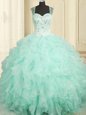 Home >  Quinceanera Dresses >  Fashionable Quinceanera Dresses > Stylish Straps Sleeveless Zipper Vestidos de Quinceanera Aqua Blue Organza