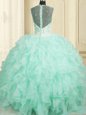 Stylish Straps Sleeveless Zipper Vestidos de Quinceanera Aqua Blue Organza