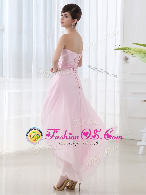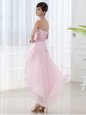 Stylish Sweetheart Sleeveless Cocktail Dresses High Low Beading Baby Pink Chiffon