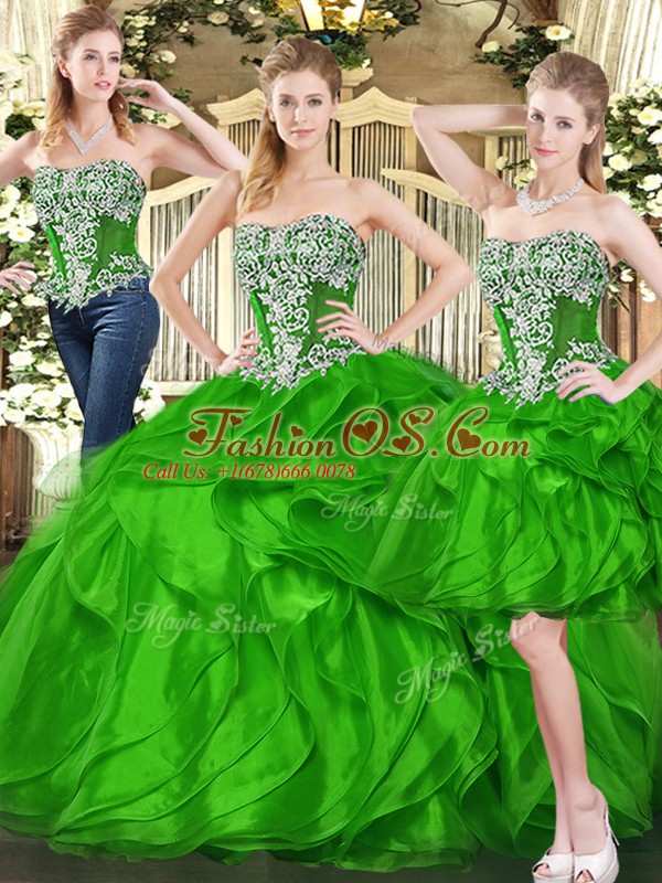 Home >  Quinceanera Dresses >  Detachable Quinceanera Skirts > Stylish Sweetheart Sleeveless Lace Up Quinceanera Gowns Green Organza