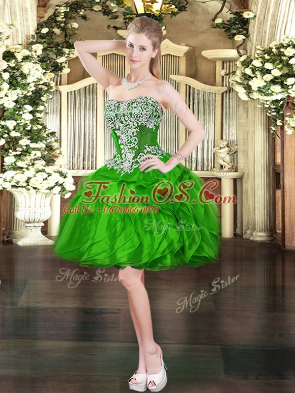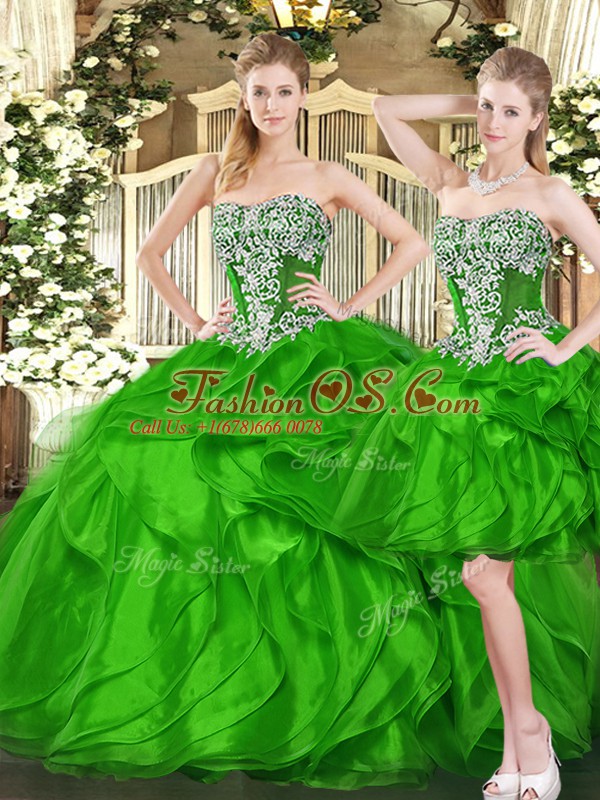 Stylish Sweetheart Sleeveless Lace Up Quinceanera Gowns Green Organza