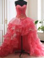 Home >  Quinceanera Dresses >  Detachable Quinceanera Skirts > Stylish Three Piece Sleeveless Beading and Ruffled Layers Lace Up Sweet 16 Quinceanera Dress with White and Coral Red Brush Train