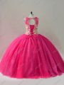 Stylish Tulle Scoop Sleeveless Lace Up Beading 15th Birthday Dress in Hot Pink