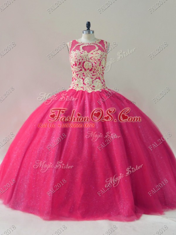Home >  Quinceanera Dresses >  Quinceanera Dresses 2019 > Stylish Tulle Scoop Sleeveless Lace Up Beading 15th Birthday Dress in Hot Pink