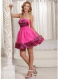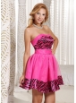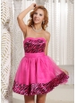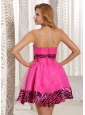Stylish Zebra A-line Mini-length 2013 Prom Dress With Hot Pink Organza