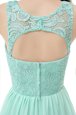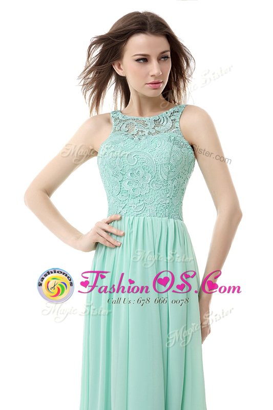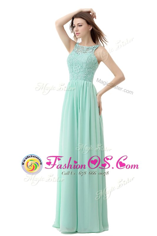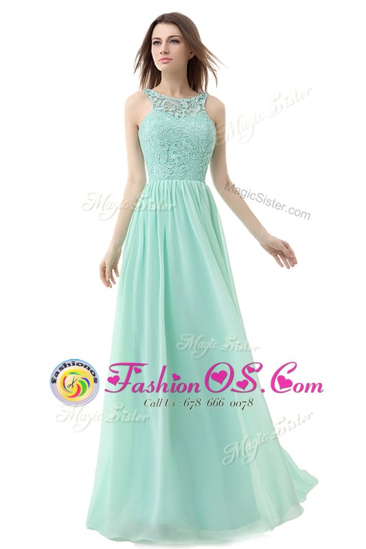 Suitable Apple Green Chiffon and Tulle Zipper Scoop Sleeveless Floor Length Prom Gown Ruffles