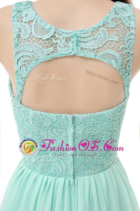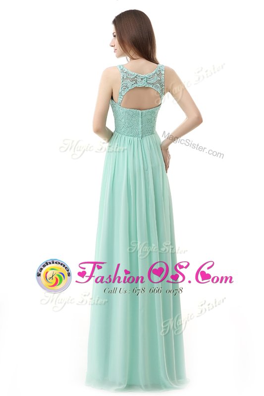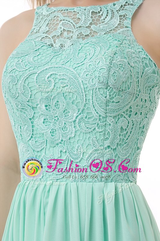 Home >  Prom Dresses >  Perfect Prom Dresses > Suitable Apple Green Chiffon and Tulle Zipper Scoop Sleeveless Floor Length Prom Gown Ruffles