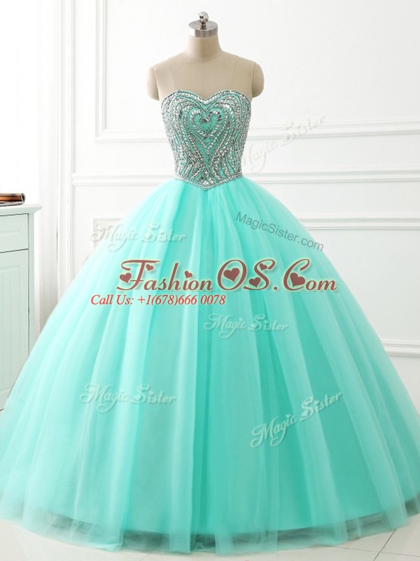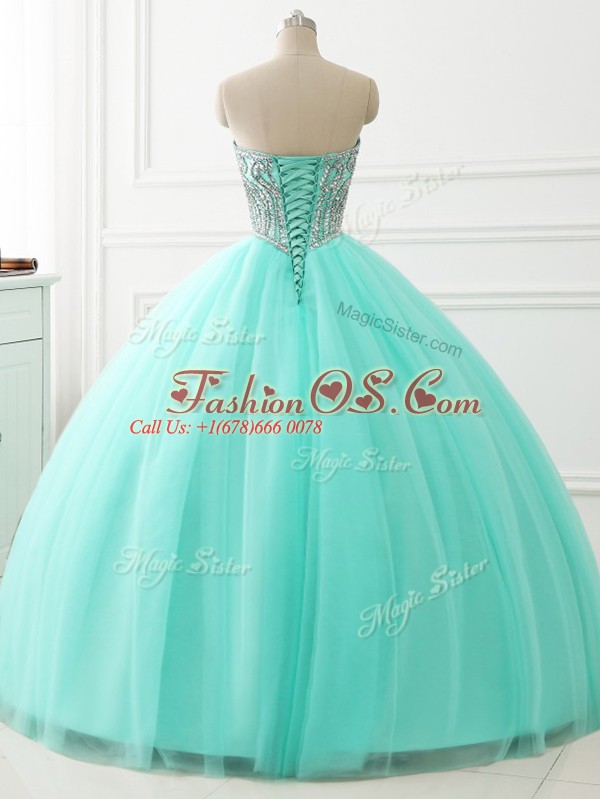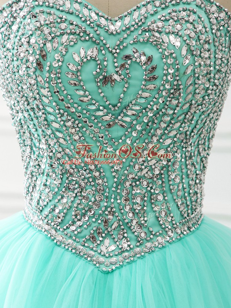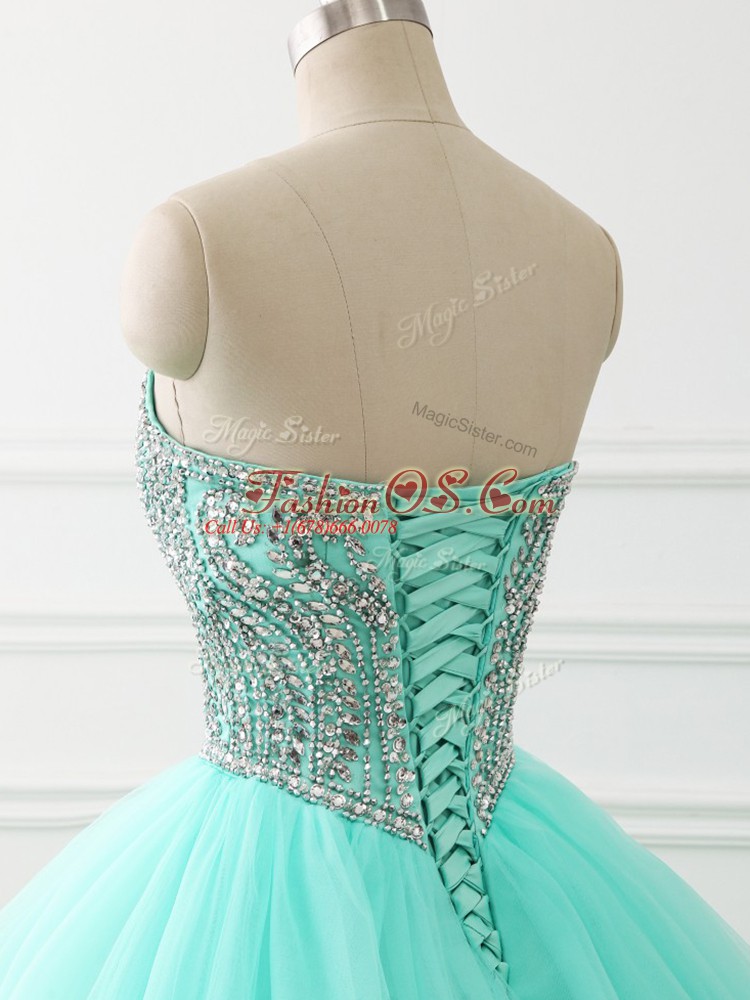 Suitable Apple Green Sweetheart Lace Up Beading 15 Quinceanera Dress Sleeveless