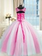 Suitable Baby Pink and Pink And White V-neck Neckline Beading Sweet 16 Quinceanera Dress Sleeveless Lace Up