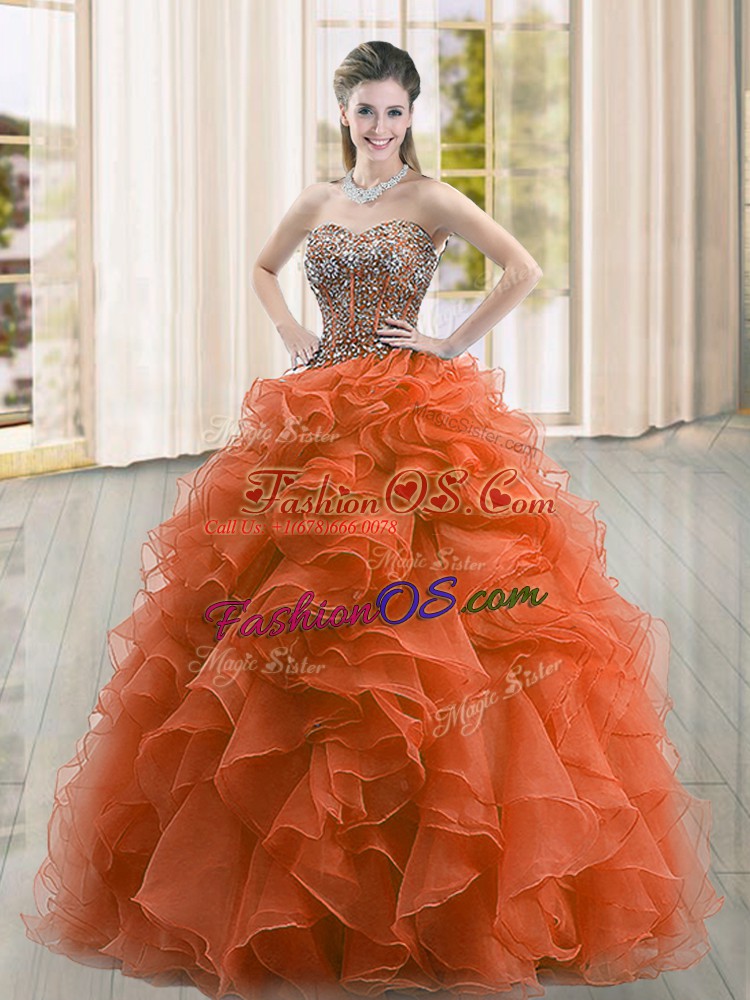 Suitable Beading and Ruffles Quince Ball Gowns Rust Red Lace Up Sleeveless Floor Length