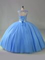 Home >  Quinceanera Dresses >  Custom Made Quinceanera Dresses > Suitable Floor Length Blue Quince Ball Gowns Scoop Sleeveless Lace Up
