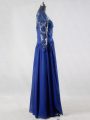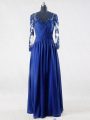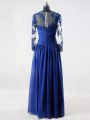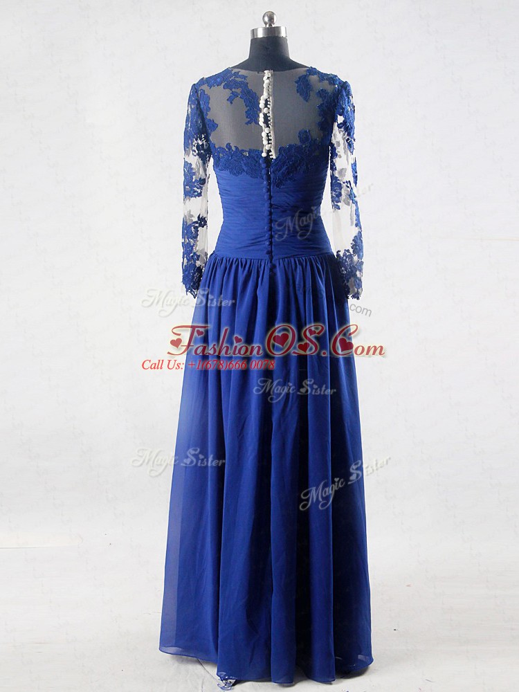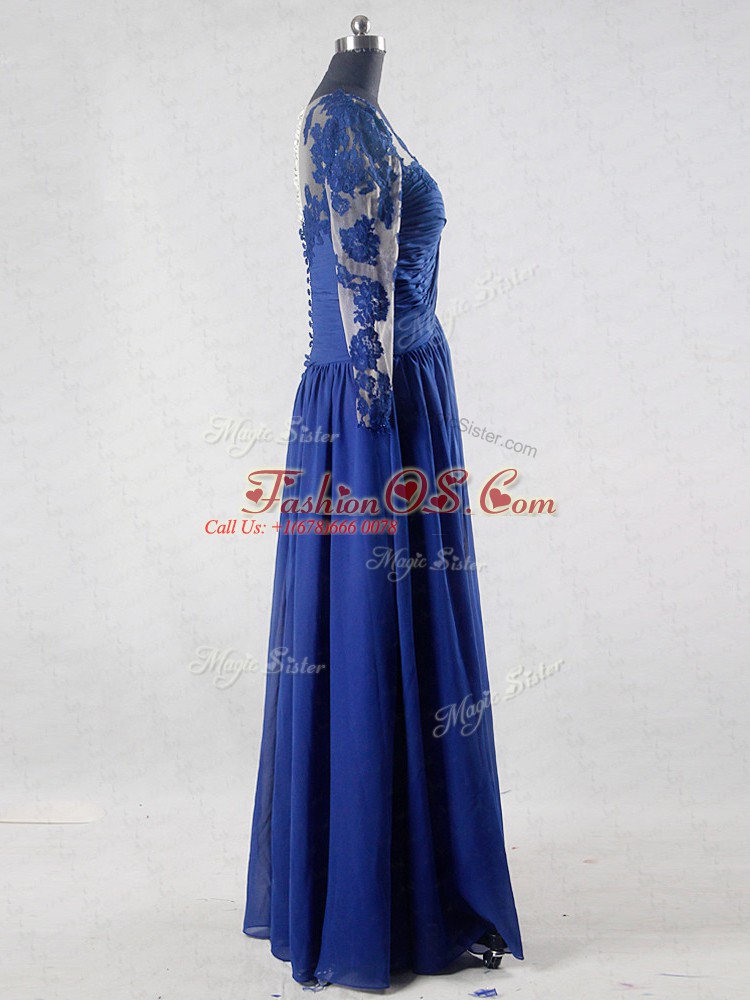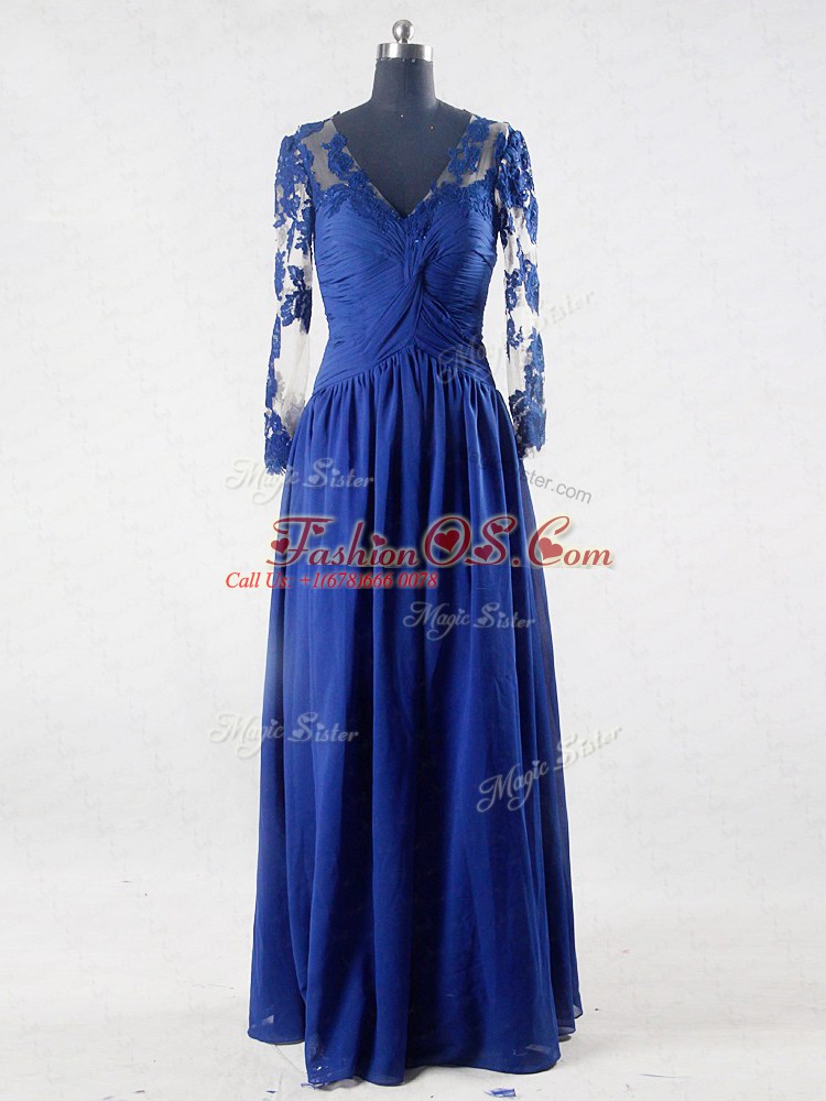 Suitable Floor Length Empire Long Sleeves Blue Mother Of The Bride Dress Zipper