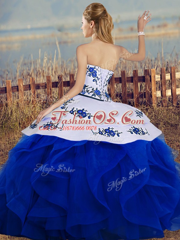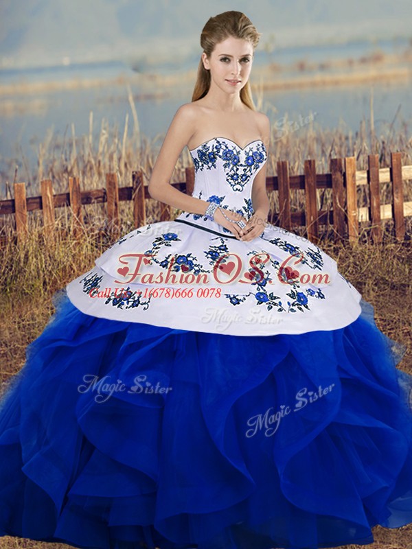 Suitable Floor Length Royal Blue Sweet 16 Dresses Sweetheart Sleeveless Lace Up