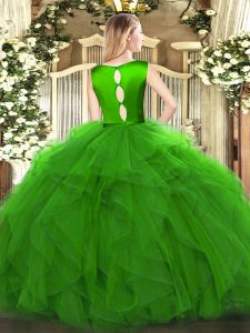Suitable Fuchsia Clasp Handle Scoop Ruffles Quinceanera Dress Organza Sleeveless