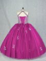 Home >  Quinceanera Dresses >  Discount Quinceanera Dresses > Suitable Fuchsia Tulle Lace Up Sweet 16 Dresses Sleeveless Floor Length Beading and Appliques