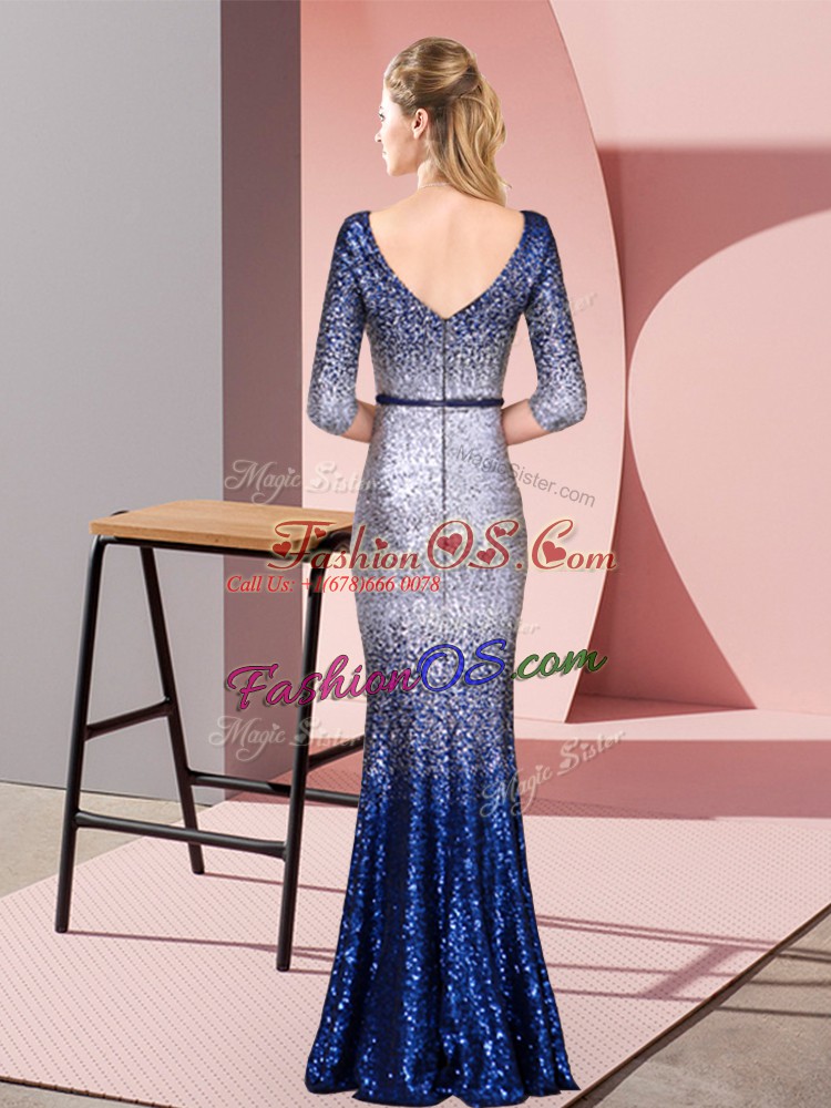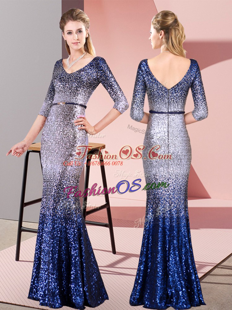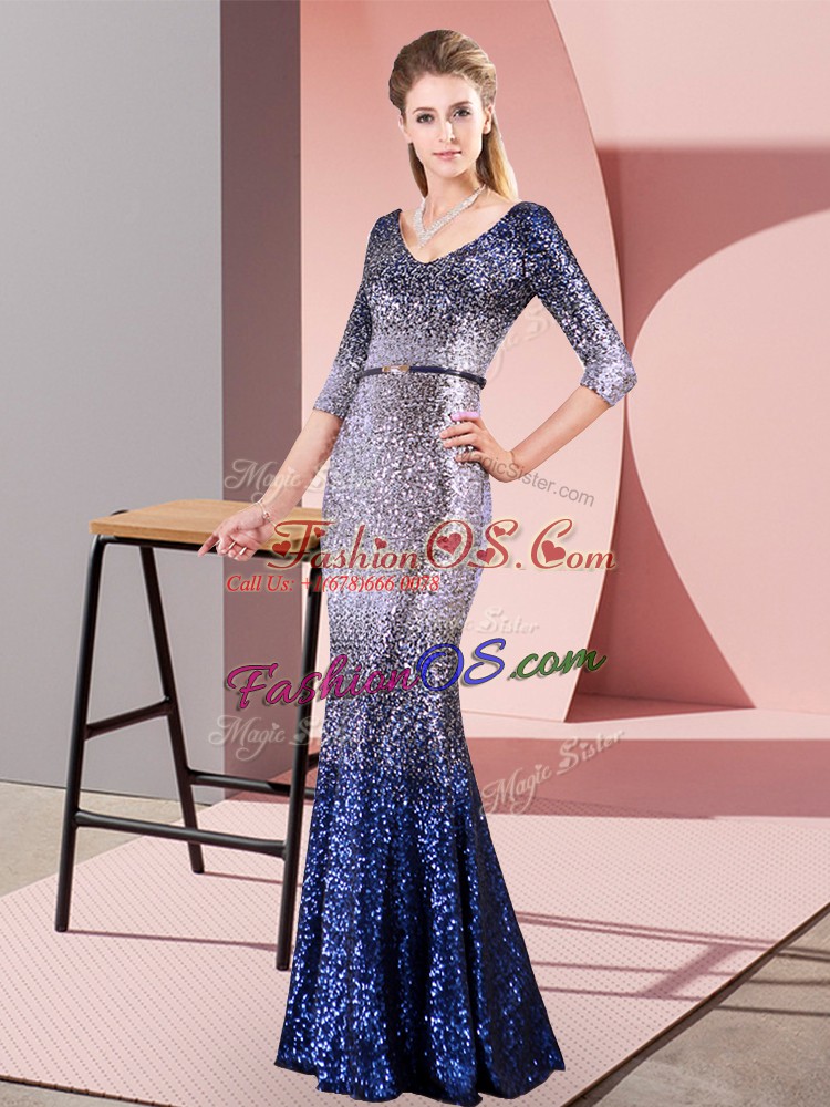 Suitable Multi-color 3 4 Length Sleeve Belt Floor Length Dress for Prom
