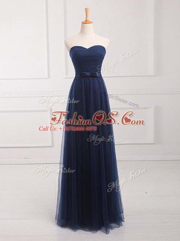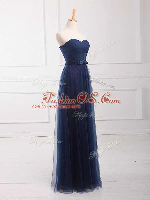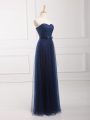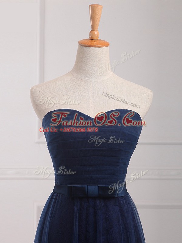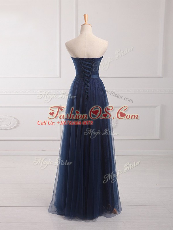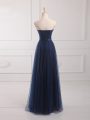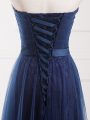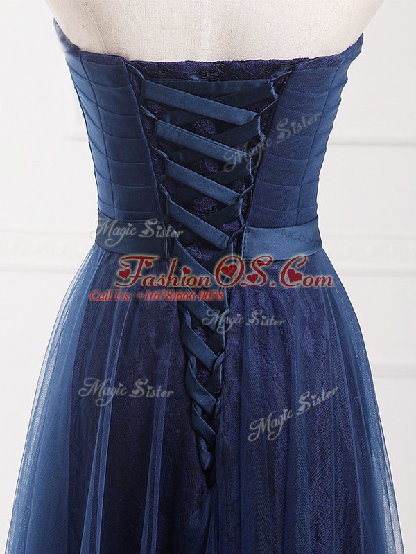 Suitable Navy Blue Sleeveless Tulle and Lace Lace Up Damas Dress for Prom and Party and Wedding Party