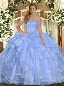 Suitable Organza Sweetheart Sleeveless Lace Up Ruffles Quinceanera Gowns in Light Blue