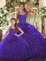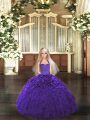 Suitable Purple 15th Birthday Dress Military Ball and Sweet 16 and Quinceanera with Ruffles Halter Top Sleeveless Lace Up
