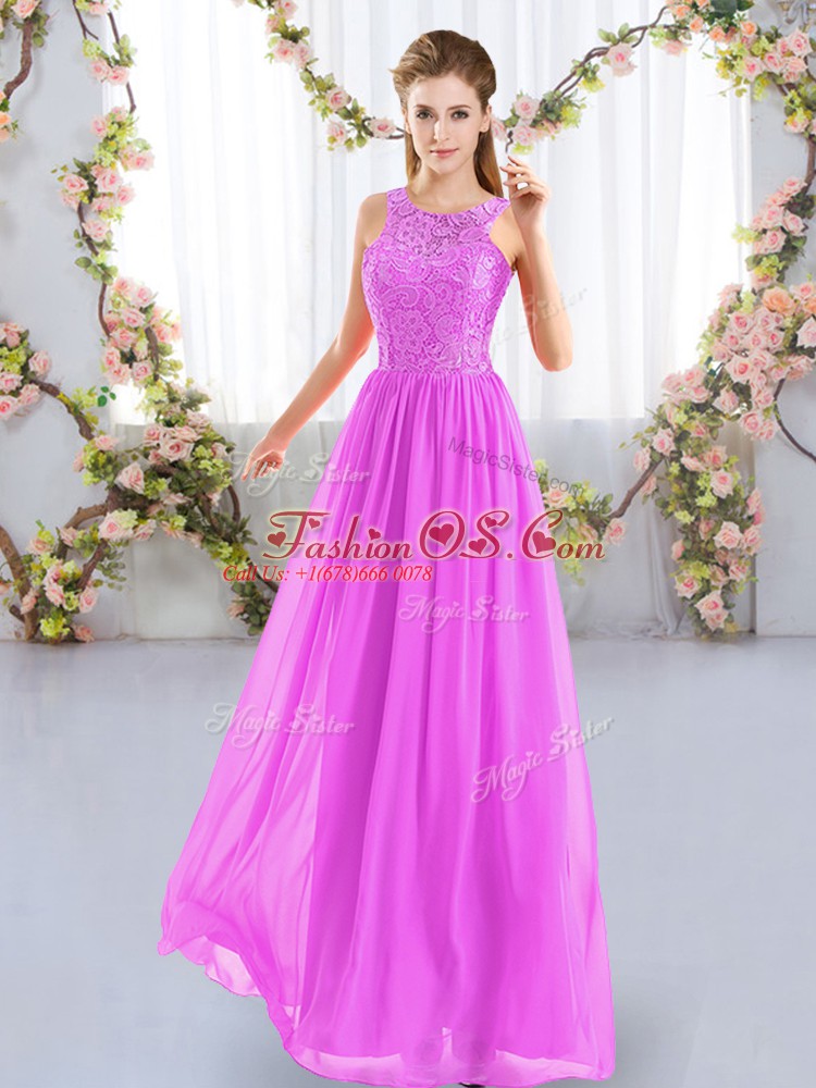 Suitable Scoop Sleeveless Chiffon Quinceanera Court of Honor Dress Lace Zipper
