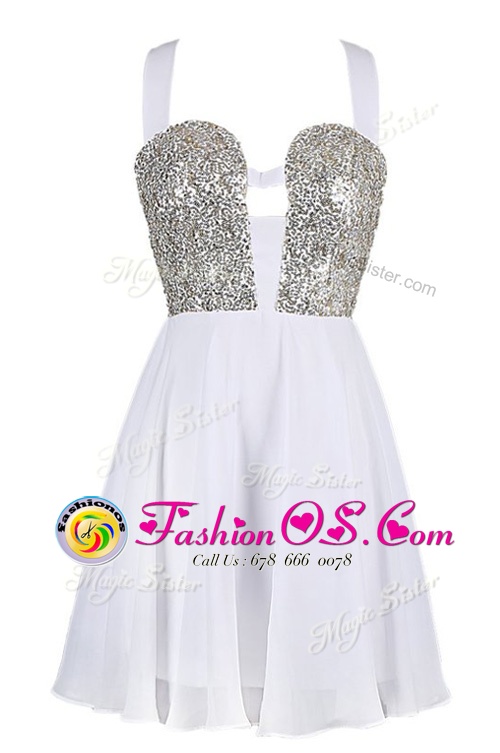 Suitable Sleeveless Knee Length Sequins Criss Cross Club Wear with White