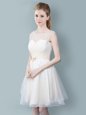 Home >  Bridesmaid Dresses >  Elegant Bridesmaid Dresses > Suitable Straps Champagne Tulle Zipper Bridesmaids Dress Cap Sleeves Knee Length Ruching and Bowknot