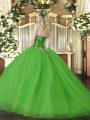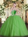Suitable Sweetheart Sleeveless Ball Gown Prom Dress Brush Train Beading Green Tulle