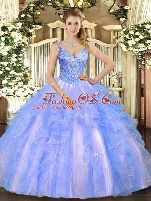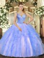 Suitable V-neck Sleeveless Lace Up Quinceanera Dresses Blue Tulle