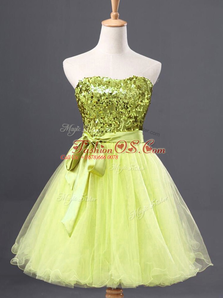 Suitable Yellow Green Tulle Zipper Prom Gown Sleeveless Mini Length Sequins