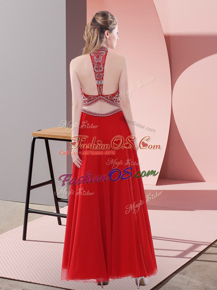 Sumptuous Ankle Length Red Homecoming Dress Halter Top Sleeveless Backless