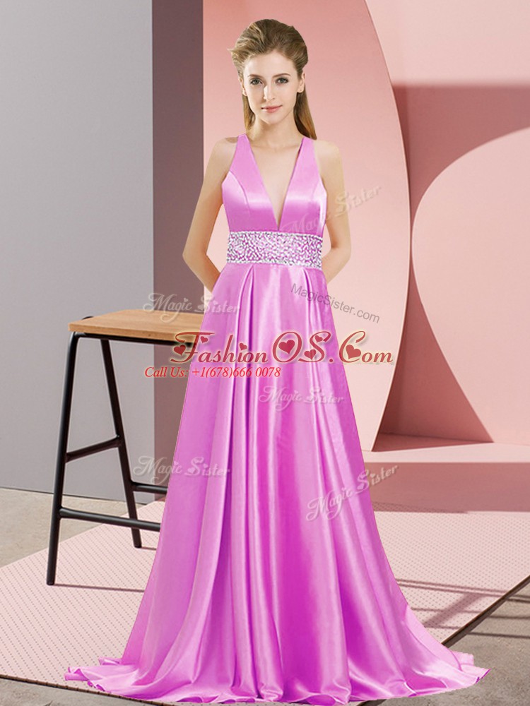 Sumptuous Beading Mother Of The Bride Dress Lilac Backless Sleeveless Brush Train
