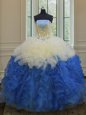 Home >  Quinceanera Dresses >  Cheap Quinceanera Dresses > Sumptuous Blue And White Strapless Lace Up Beading and Ruffles Quinceanera Dresses Sleeveless