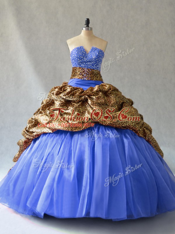 Sumptuous Blue Lace Up Sweet 16 Dresses Beading and Pick Ups Sleeveless Brush Train