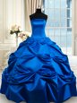 Sumptuous Blue Sweet 16 Dresses Military Ball and Sweet 16 and Quinceanera and For with Beading and Ruffles Strapless Sleeveless Lace Up