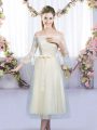 Home >  Bridesmaid Dresses >  Perfect Bridesmaid Dresses > Sumptuous Champagne Empire Off The Shoulder 3 4 Length Sleeve Tulle Tea Length Lace Up Lace and Bowknot Bridesmaids Dress