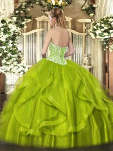 Sumptuous Floor Length Yellow Green Sweet 16 Dresses Organza Sleeveless Ruffles