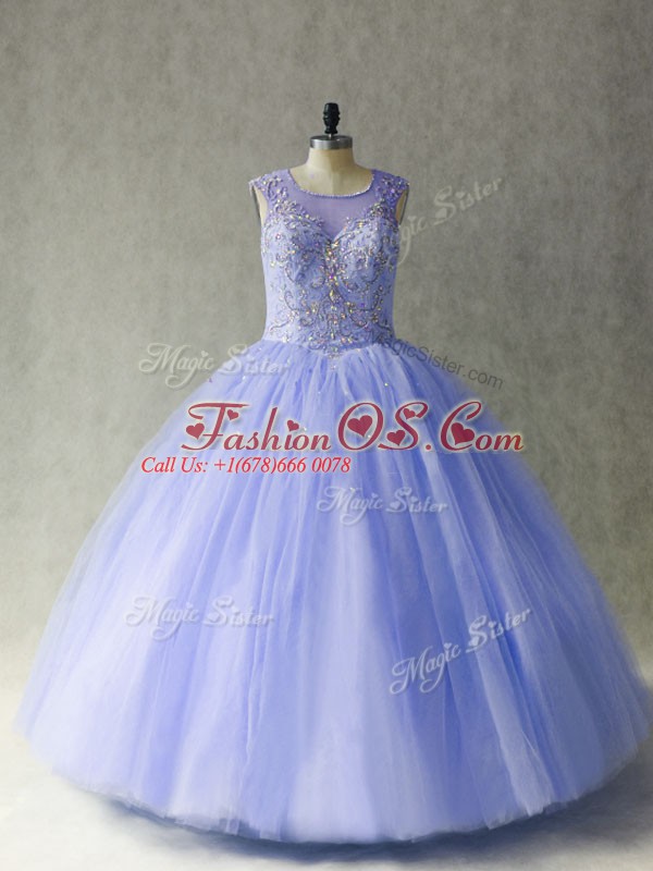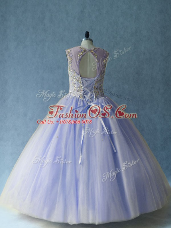 Home >  Quinceanera Dresses >  In Stock Quinceanera Dresses > Sumptuous Lavender Tulle Lace Up Scoop Sleeveless 15th Birthday Dress Beading