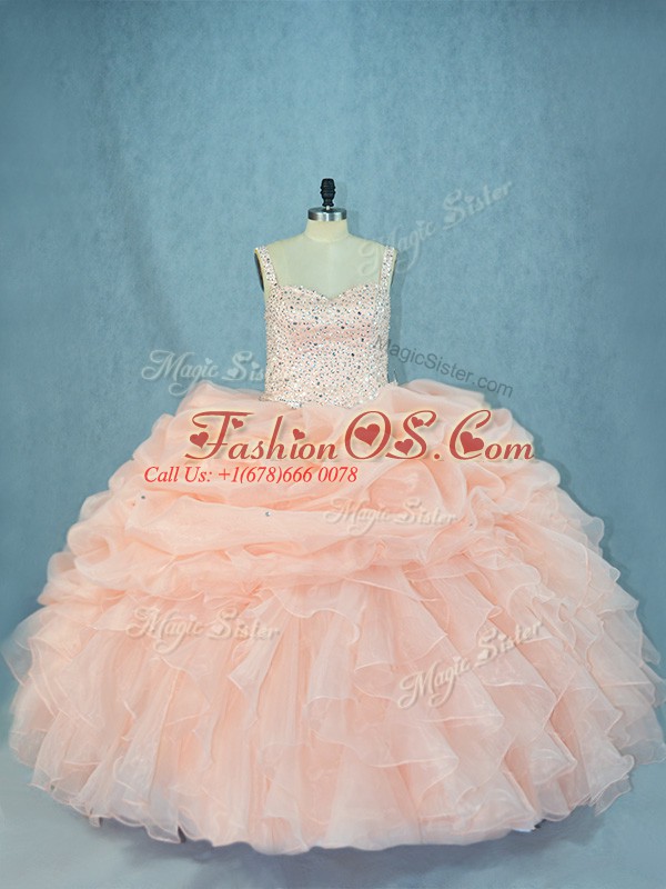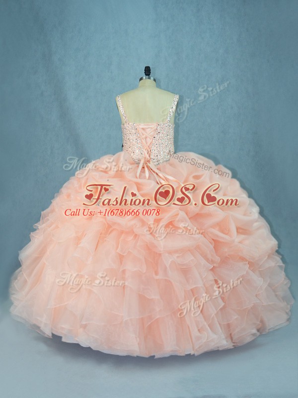 Sumptuous Peach Organza Lace Up Straps Sleeveless Quinceanera Dresses Beading